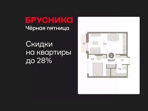 Квартира с кухней-гостиной и одной спальней в Бруснике в Академическом. Особенности планировки: предчистовая отделка, балкон.