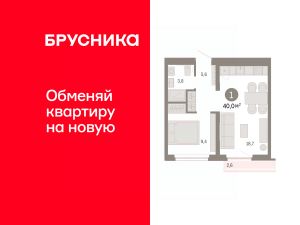 Квартира с кухней-гостиной и одной спальней в Бруснике в Академическом. Особенности планировки: балкон, предчистовая отделка.