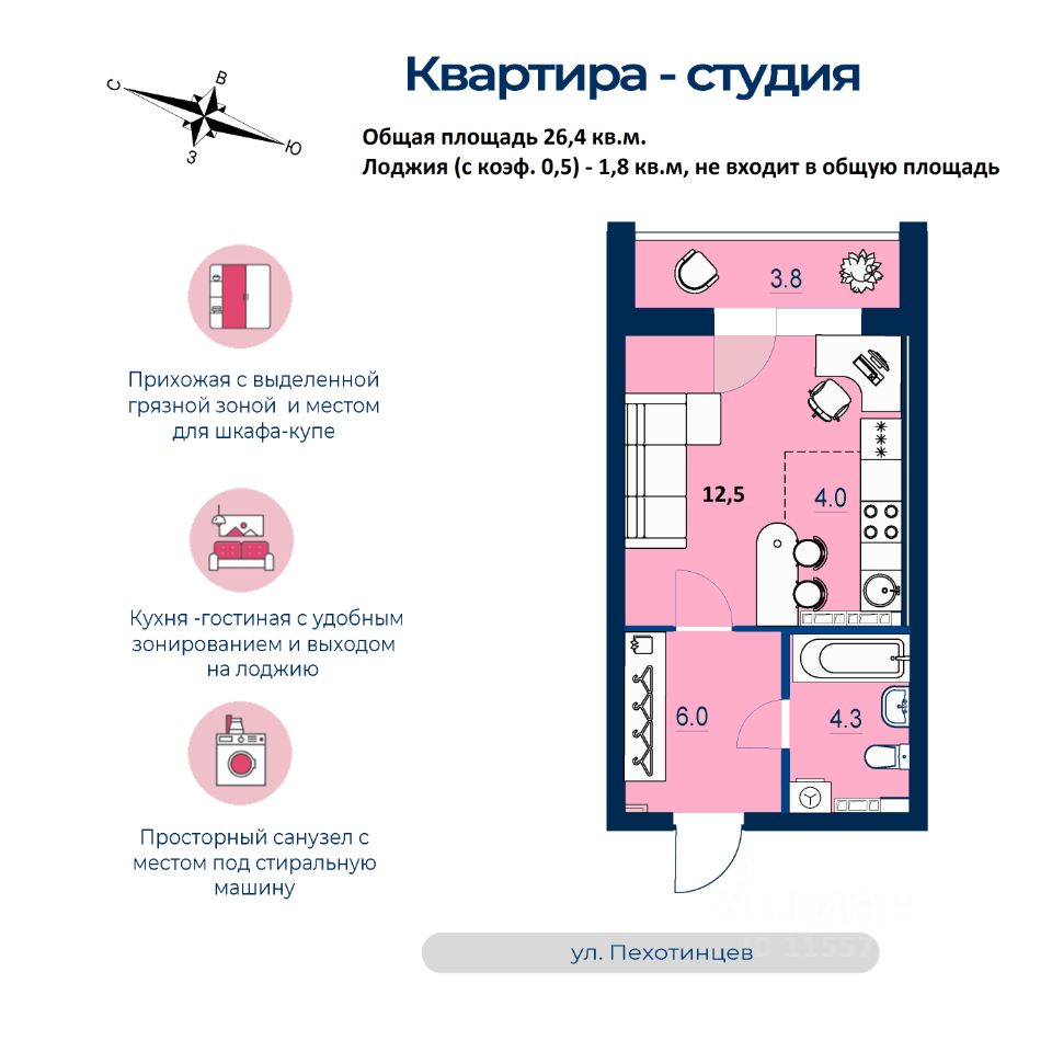 Продаётся студия в сданном доме (Пехотинцев, 2А/1), срок сдачи: I-кв. 2026, общей площадью 26.4 кв.м., на 13 этаже. Новый жилой комплекс "Estelle" от застройщика "СЗ Инвестстрой" расположен по адресу: г. Екатеринбург, улица Пехотинцев.