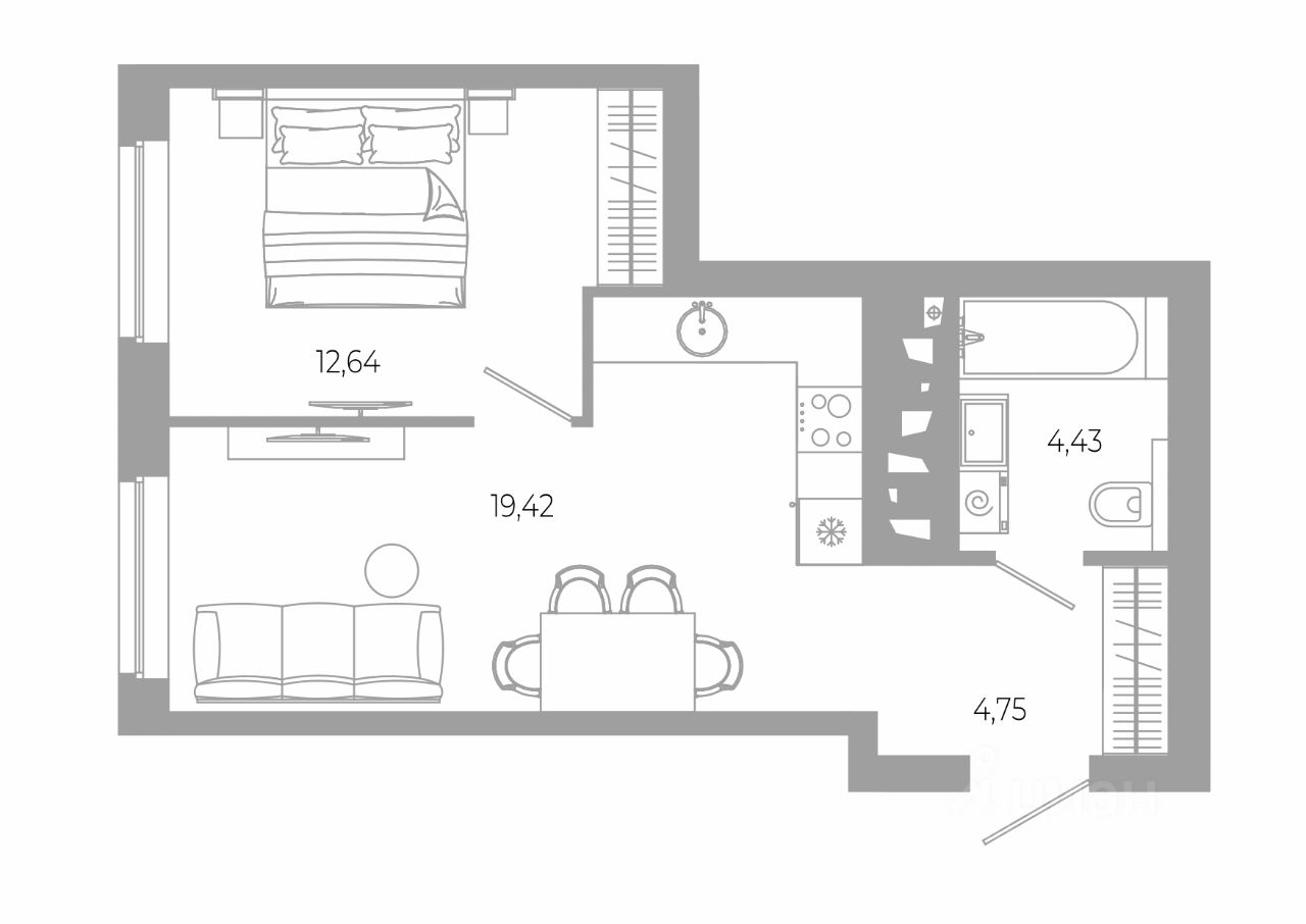 Общая площадь41,24 м²