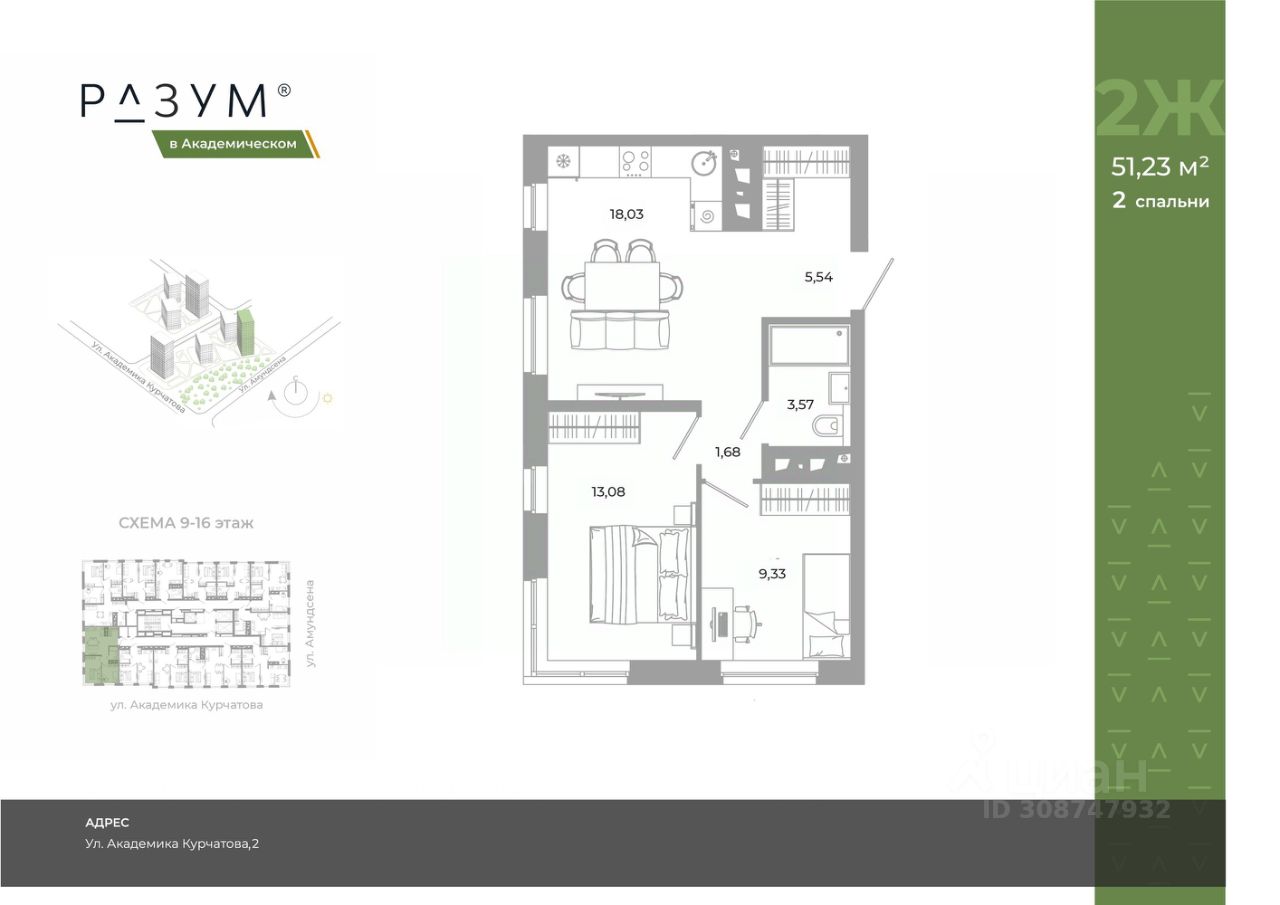 "РАЗУМ в Академическом" — это жилой комплекс из 7 домов переменной этажности от федерального девелопера "РАЗУМ" с 12-летним опытом создания жилых проектов. Дома от 12 до 24 этажей расположены в границах ул. Амундсена. В пешей доступности: - 6 школ; - 10 детских садов; - магазины; - поликлиники; - фитнес-залы. Рядом удобный выезд на ЕКАД. Главная особенность проекта — угловое остекление, которое составляет 22% всей площади. Окна в квартирах установлены в 60 см от пола. Увеличенная площадь остекления помогает снизить затраты на энергоресурсы и создаёт уют в квартире. Сердце жилого комплекса — приватный двор-парк с игровыми комплексами, тренажерами, площадками. "городские грядки" — новое решение благоустройства, где выращиваются ароматные травы или цветы. За пределами комплекса есть прогулочная зона с эко-тропой с вдохновляющими надписями. Прогулки по эко-тропе — это променады наедине с природой. "РАЗУМ в Академическом" — это: - территория без машин; - безбарьерная среда; - единый экостиль в оформлении дворового пространства; - 11 тематических зоны в двор-парке; - многоуровневое освещение и подсветка фасадов; - видеонаблюдение; - гостевой паркинг; - эстетичные подъездные холлы со сквозными подъездами и комфортной зоной ожидания; - Разделенные колясочные и велосипедные зоны; - Велосипедные на 1 этаже; - Кладовые помещения на каждом этаже и на -1 этаже. В проекте 25 планировочных решений: от уютных студий от 21,51 м² до квартир с тремя спальнями и кухней-гостиной до 66,58 м² с функциональным разделением на гостевую и приватные зоны.