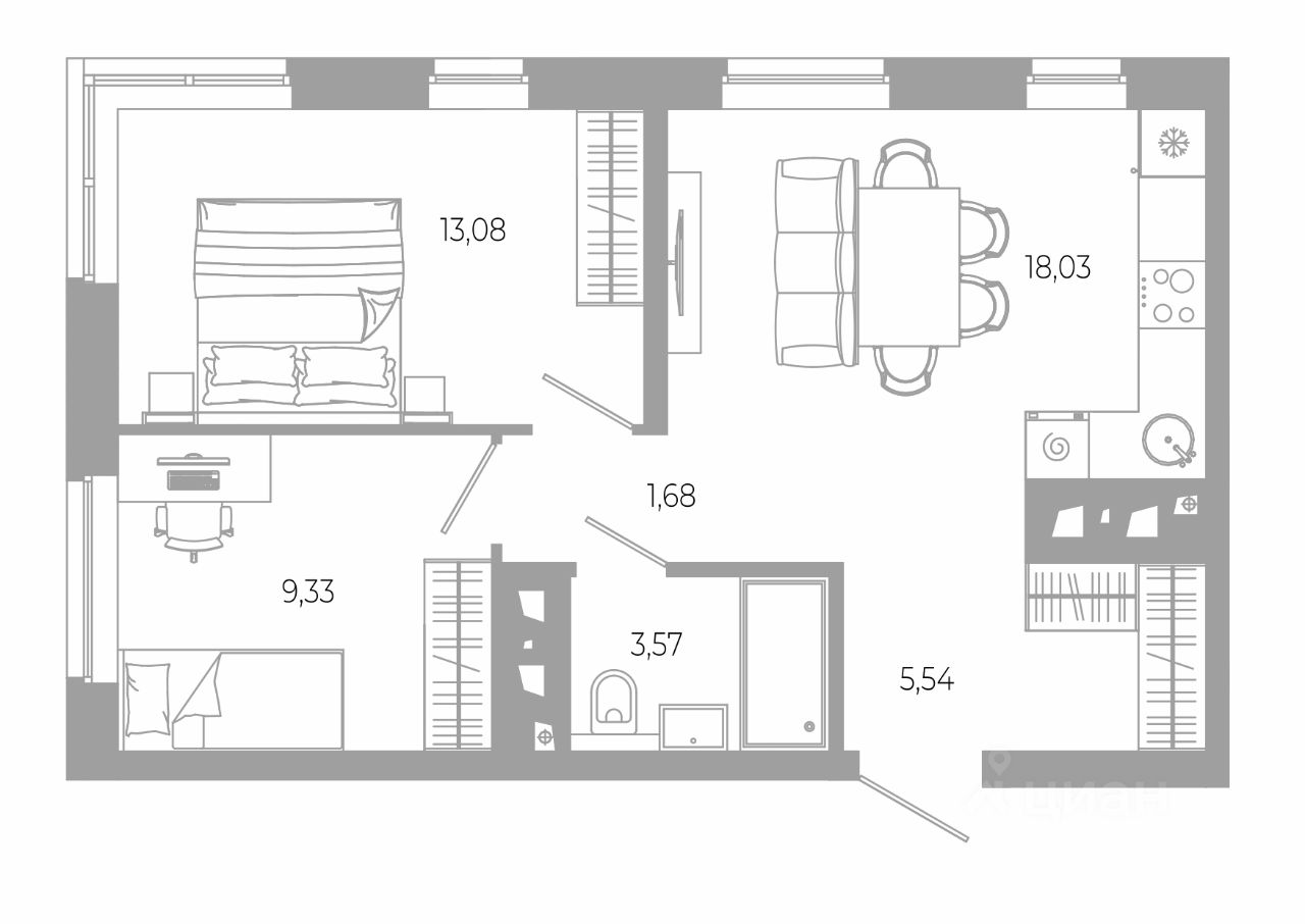 Общая площадь51,23 м²