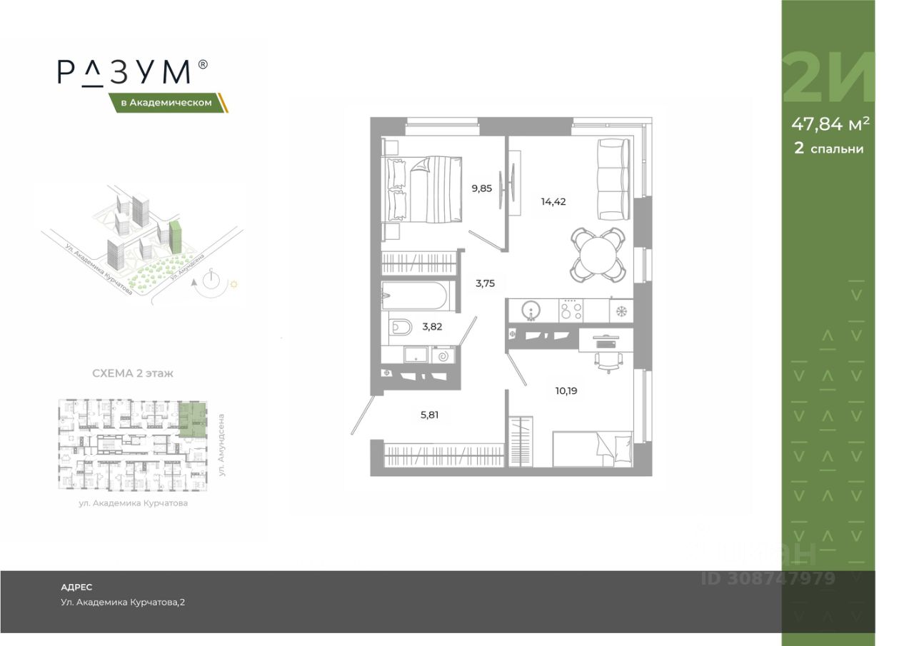"РАЗУМ в Академическом" — это жилой комплекс из 7 домов переменной этажности от федерального девелопера "РАЗУМ" с 12-летним опытом создания жилых проектов. Дома от 12 до 24 этажей расположены в границах ул. Амундсена. В пешей доступности: - 6 школ; - 10 детских садов; - магазины; - поликлиники; - фитнес-залы. Рядом удобный выезд на ЕКАД. Главная особенность проекта — угловое остекление, которое составляет 22% всей площади. Окна в квартирах установлены в 60 см от пола. Увеличенная площадь остекления помогает снизить затраты на энергоресурсы и создаёт уют в квартире. Сердце жилого комплекса — приватный двор-парк с игровыми комплексами, тренажерами, площадками. "городские грядки" — новое решение благоустройства, где выращиваются ароматные травы или цветы. За пределами комплекса есть прогулочная зона с эко-тропой с вдохновляющими надписями. Прогулки по эко-тропе — это променады наедине с природой. "РАЗУМ в Академическом" — это: - территория без машин; - безбарьерная среда; - единый экостиль в оформлении дворового пространства; - 11 тематических зоны в двор-парке; - многоуровневое освещение и подсветка фасадов; - видеонаблюдение; - гостевой паркинг; - эстетичные подъездные холлы со сквозными подъездами и комфортной зоной ожидания; - Разделенные колясочные и велосипедные зоны; - Велосипедные на 1 этаже; - Кладовые помещения на каждом этаже и на -1 этаже. В проекте 25 планировочных решений: от уютных студий от 21,51 м² до квартир с тремя спальнями и кухней-гостиной до 66,58 м² с функциональным разделением на гостевую и приватные зоны.