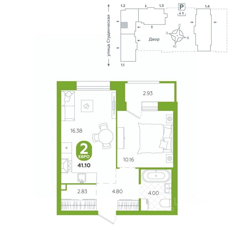 Предусмотрен подземный паркинг и кладовые. Срок сдачи 3 квартал 2026 г.