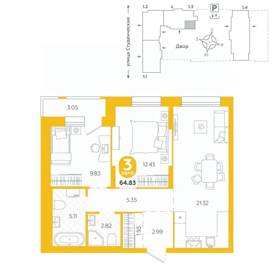 Предусмотрен подземный паркинг и кладовые. Срок сдачи 3 квартал 2026 г.