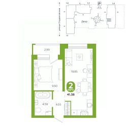 площадь квартиры - 41,38 кв.м