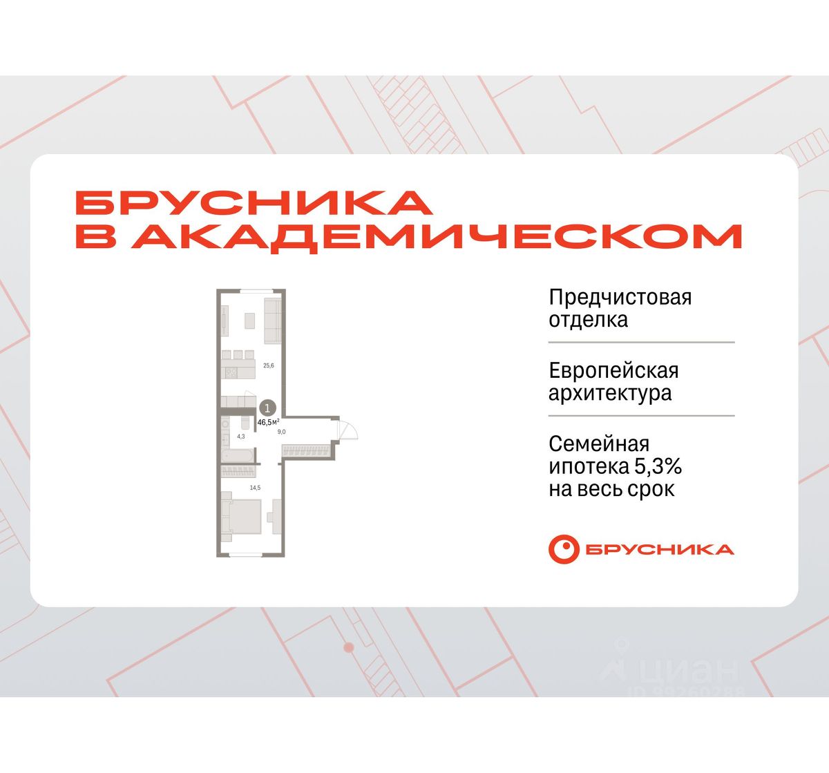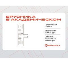 Квартира с кухней-гостиной и одной спальней в Бруснике в Академическом. Особенности планировки: окна на две стороны, вид во двор, предчистовая отделка.