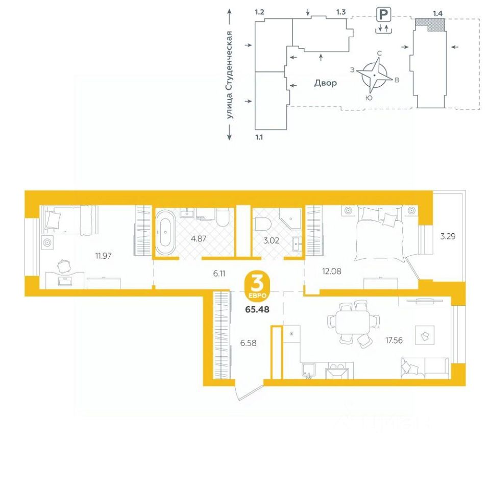 Предусмотрен подземный паркинг и кладовые. Срок сдачи 3 квартал 2026 г.