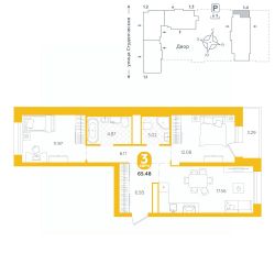 Квартира разработана с акцентом на удобство и практичность. Спальня создает атмосферу для спокойного отдыха, а ванная комната оснащена всеми необходимыми удобствами. Благодаря большим окнам все помещения хорошо освещены и идеально подходят для расстановки мебели. Планировка кухни позволяет эффективно зонировать пространство.