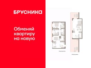 Двухуровневая квартира с кухней-гостиной и двумя спальнями в Южных кварталах. Особенности планировки: двухуровневая, летняя кухня на крыше, предчистовая отделка, терраса на крыше.