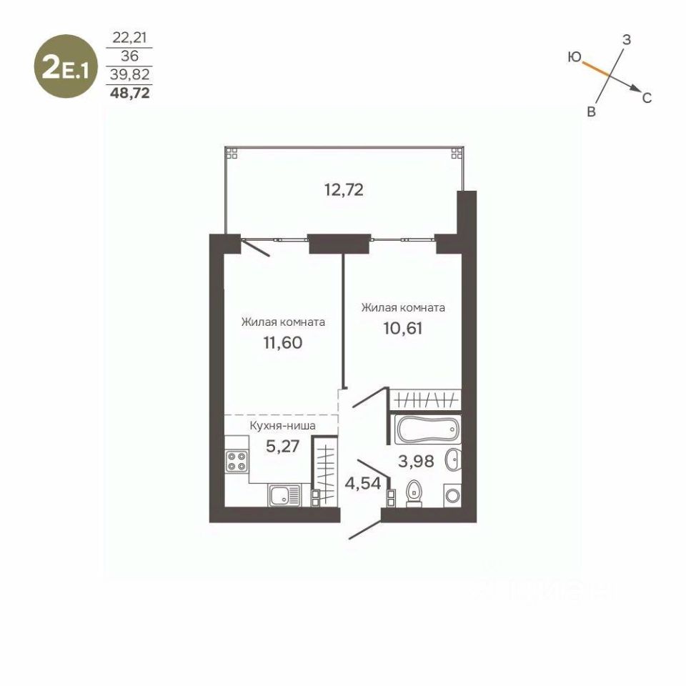 Жилая площадь22,2 м²