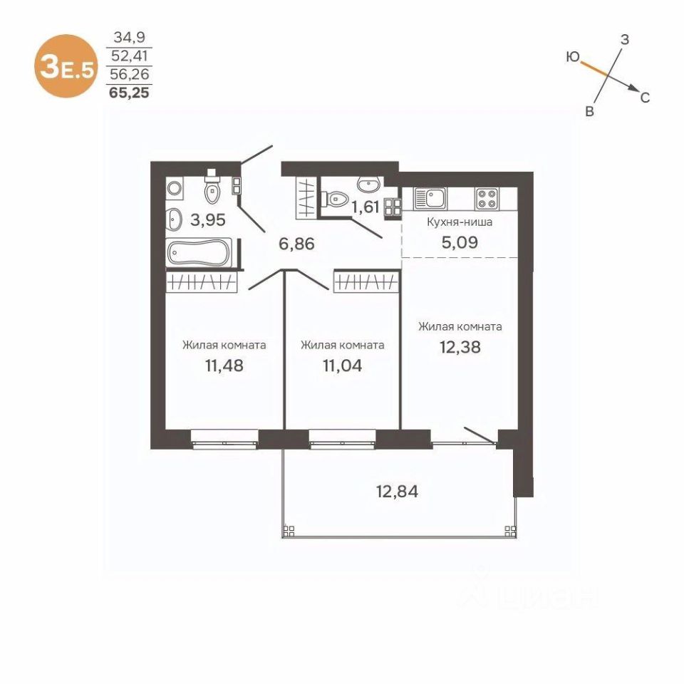 Общая площадь56,26 м²