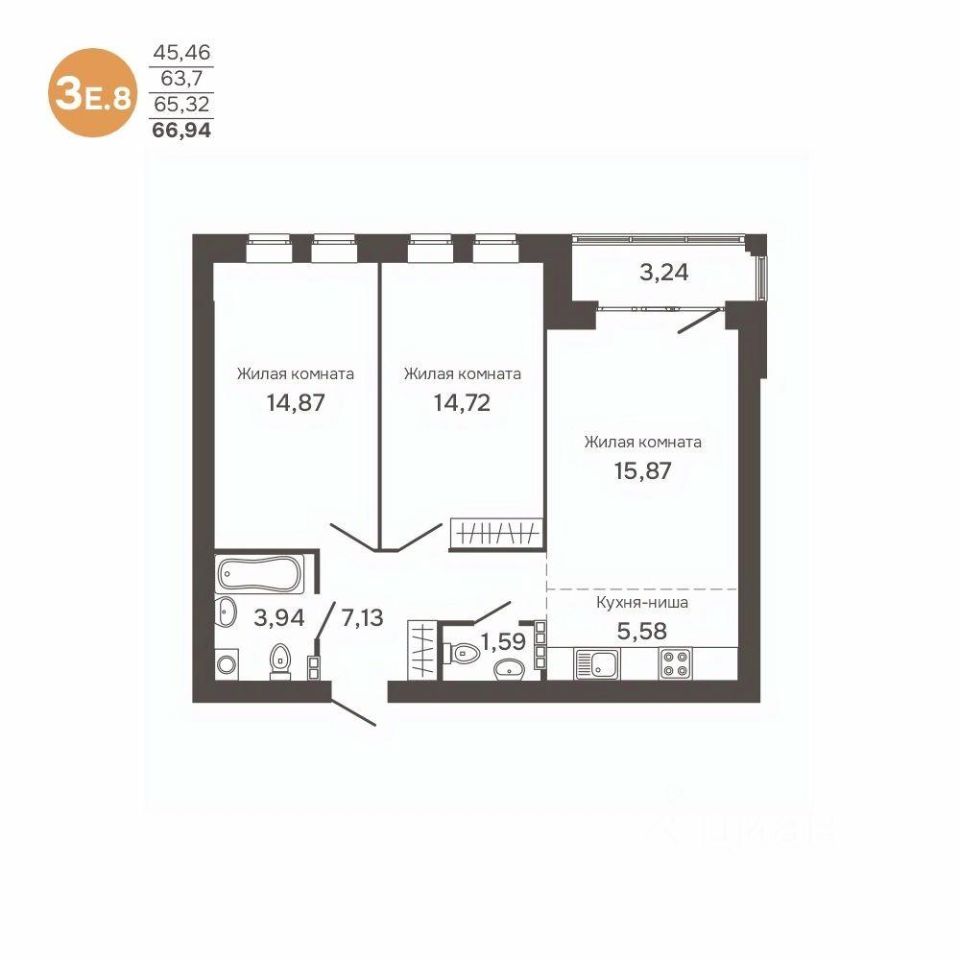 Общая площадь65,32 м²