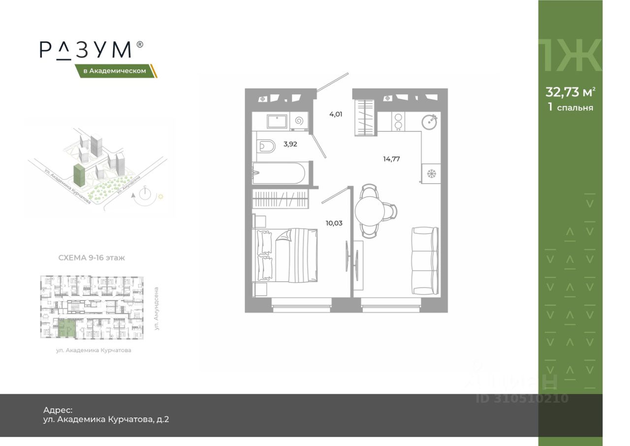 "РАЗУМ в Академическом" — это жилой комплекс из 7 домов переменной этажности от федерального девелопера "РАЗУМ" с 12-летним опытом создания жилых проектов. Дома от 12 до 24 этажей расположены в границах ул. Амундсена. В пешей доступности: - 6 школ; - 10 детских садов; - магазины; - поликлиники; - фитнес-залы. Рядом удобный выезд на ЕКАД. Главная особенность проекта — угловое остекление, которое составляет 22% всей площади. Окна в квартирах установлены в 60 см от пола. Увеличенная площадь остекления помогает снизить затраты на энергоресурсы и создаёт уют в квартире. Сердце жилого комплекса — приватный двор-парк с игровыми комплексами, тренажерами, площадками. "городские грядки" — новое решение благоустройства, где выращиваются ароматные травы или цветы. За пределами комплекса есть прогулочная зона с эко-тропой с вдохновляющими надписями. Прогулки по эко-тропе — это променады наедине с природой. "РАЗУМ в Академическом" — это: - территория без машин; - безбарьерная среда; - единый экостиль в оформлении дворового пространства; - 11 тематических зоны в двор-парке; - многоуровневое освещение и подсветка фасадов; - видеонаблюдение; - гостевой паркинг; - эстетичные подъездные холлы со сквозными подъездами и комфортной зоной ожидания; - Разделенные колясочные и велосипедные зоны; - Велосипедные на 1 этаже; - Кладовые помещения на каждом этаже и на -1 этаже. В проекте 25 планировочных решений: от уютных студий от 21,51 м² до квартир с тремя спальнями и кухней-гостиной до 66,58 м² с функциональным разделением на гостевую и приватные зоны.