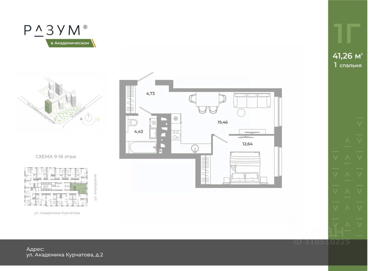"РАЗУМ в Академическом" — это жилой комплекс из 7 домов переменной этажности от федерального девелопера "РАЗУМ" с 12-летним опытом создания жилых проектов. Дома от 12 до 24 этажей расположены в границах ул. Амундсена. В пешей доступности: - 6 школ; - 10 детских садов; - магазины; - поликлиники; - фитнес-залы. Рядом удобный выезд на ЕКАД. Главная особенность проекта — угловое остекление, которое составляет 22% всей площади. Окна в квартирах установлены в 60 см от пола. Увеличенная площадь остекления помогает снизить затраты на энергоресурсы и создаёт уют в квартире. Сердце жилого комплекса — приватный двор-парк с игровыми комплексами, тренажерами, площадками. "городские грядки" — новое решение благоустройства, где выращиваются ароматные травы или цветы. За пределами комплекса есть прогулочная зона с эко-тропой с вдохновляющими надписями. Прогулки по эко-тропе — это променады наедине с природой. "РАЗУМ в Академическом" — это: - территория без машин; - безбарьерная среда; - единый экостиль в оформлении дворового пространства; - 11 тематических зоны в двор-парке; - многоуровневое освещение и подсветка фасадов; - видеонаблюдение; - гостевой паркинг; - эстетичные подъездные холлы со сквозными подъездами и комфортной зоной ожидания; - Разделенные колясочные и велосипедные зоны; - Велосипедные на 1 этаже; - Кладовые помещения на каждом этаже и на -1 этаже. В проекте 25 планировочных решений: от уютных студий от 21,51 м² до квартир с тремя спальнями и кухней-гостиной до 66,58 м² с функциональным разделением на гостевую и приватные зоны.