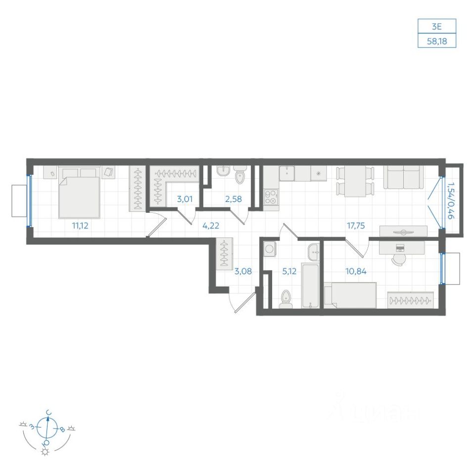 Общая площадь58,32 м²