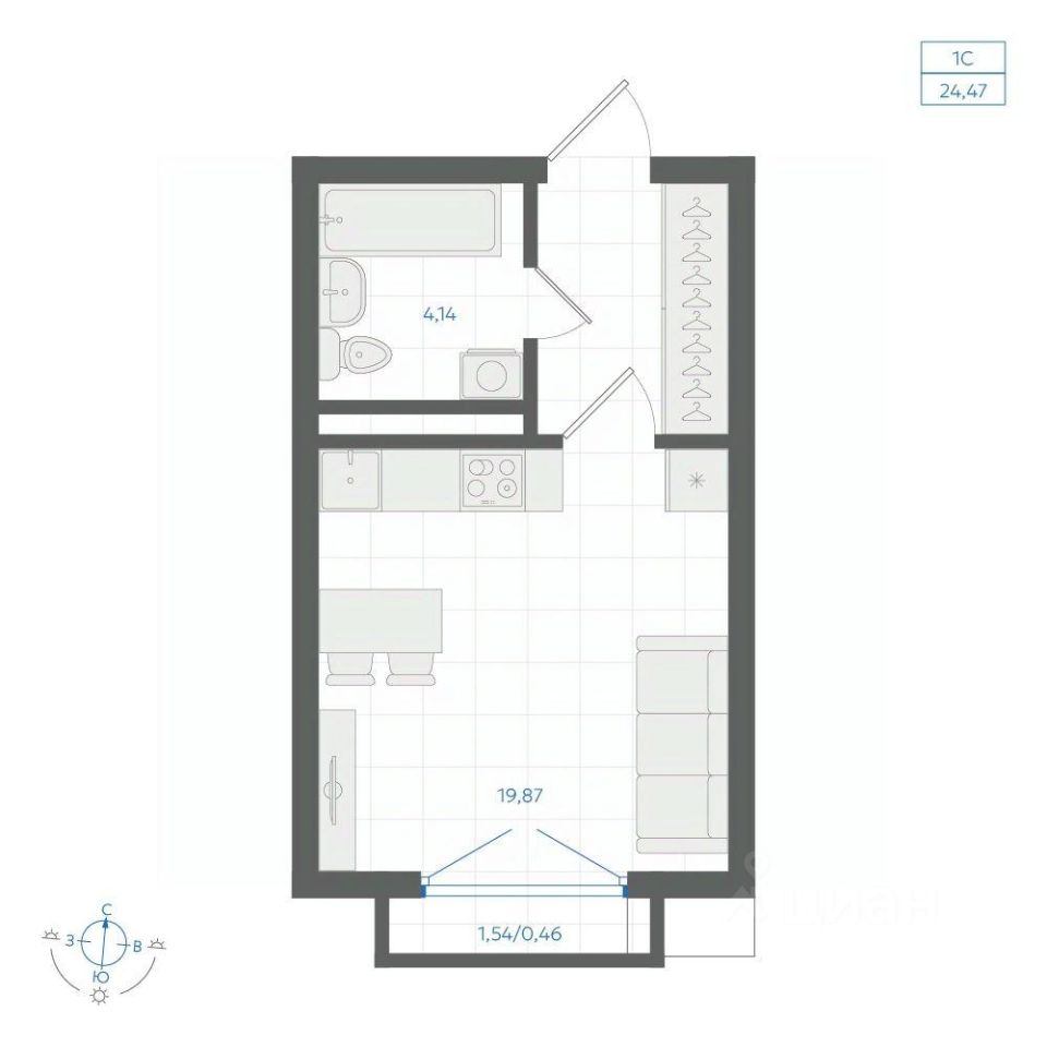 Общая площадь24,67 м²