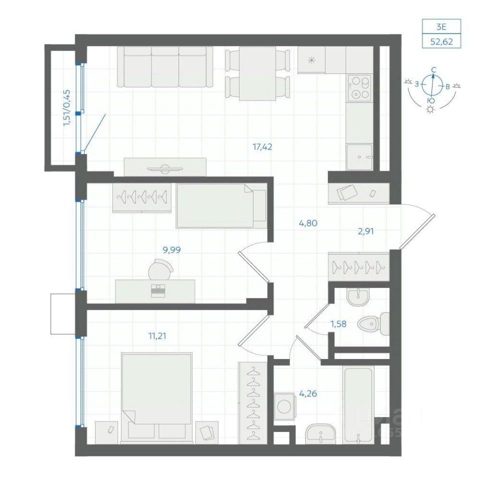 Общая площадь52,62 м²