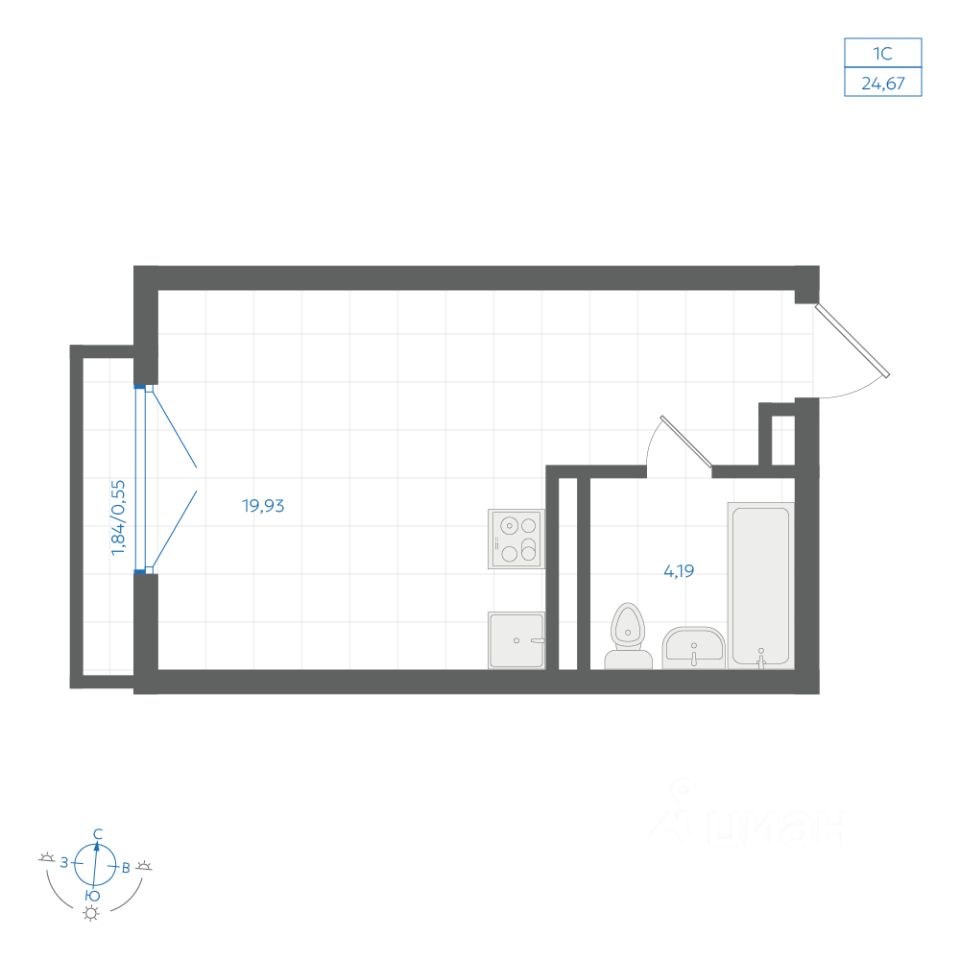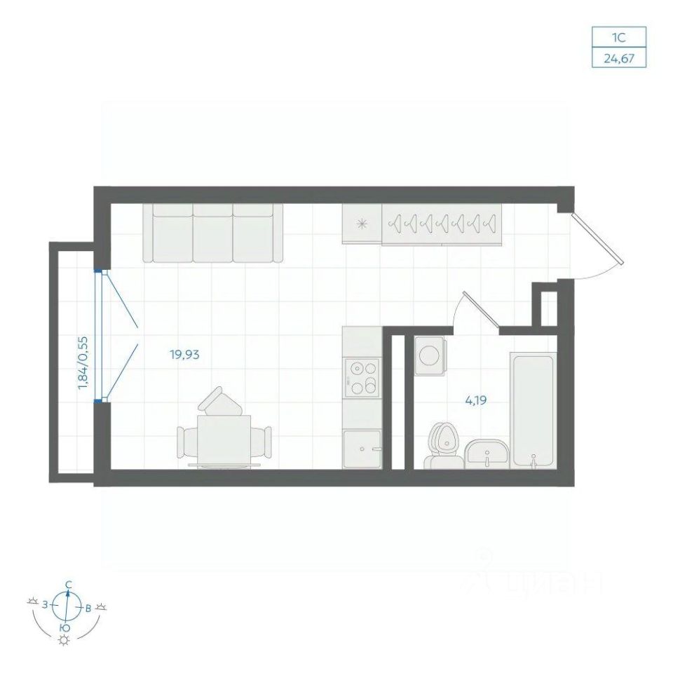 Общая площадь24,81 м²