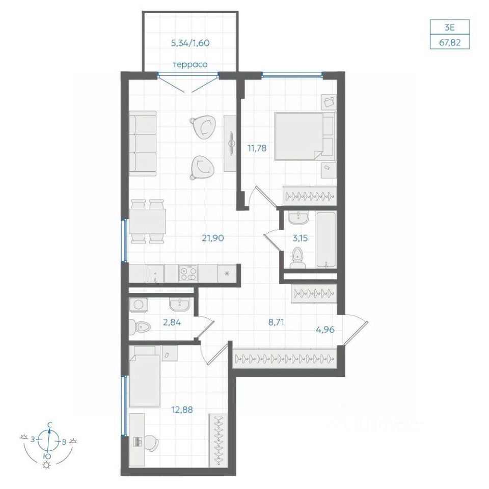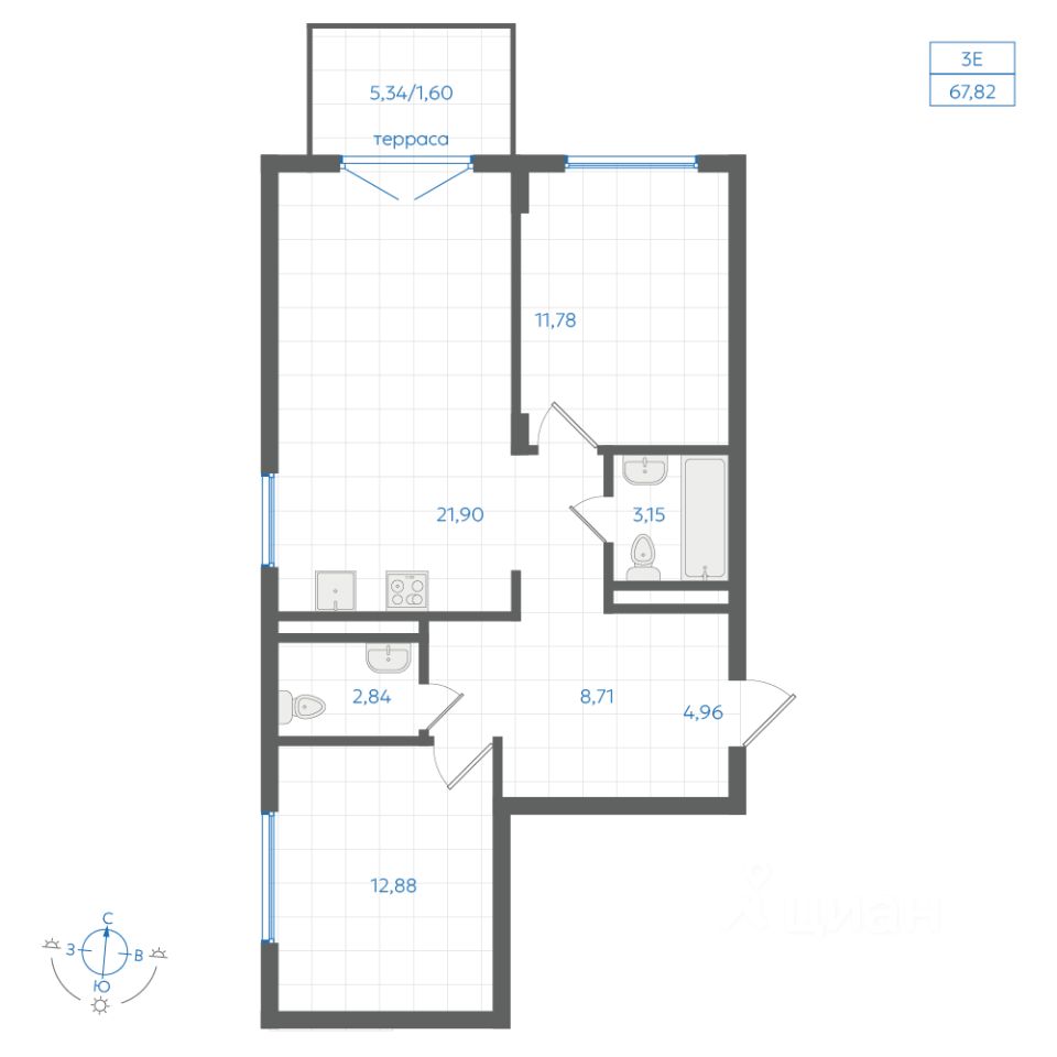 Общая площадь67,82 м²