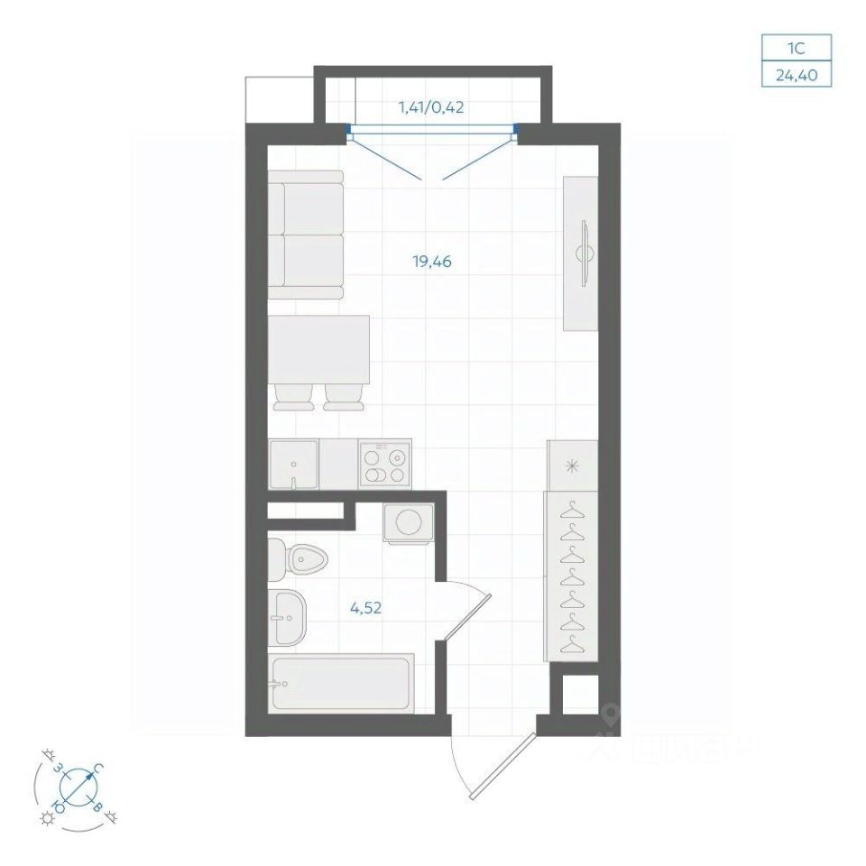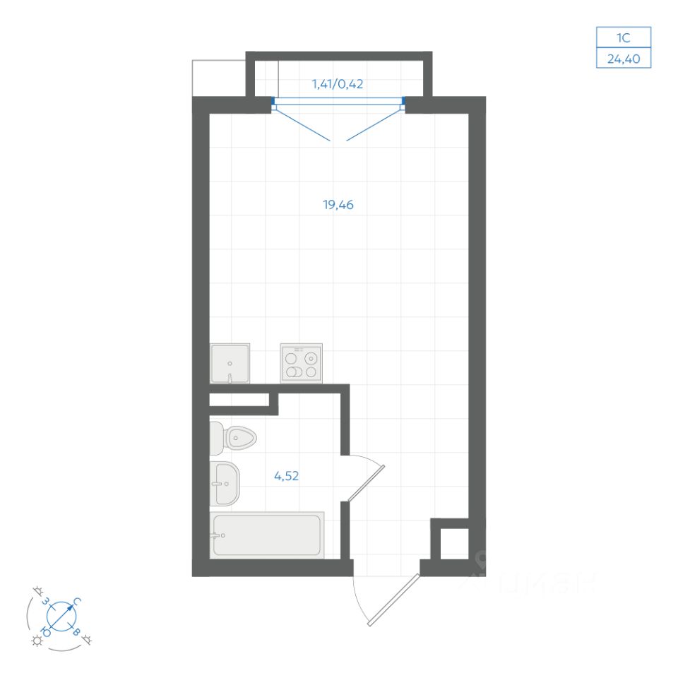 Общая площадь24,4 м²