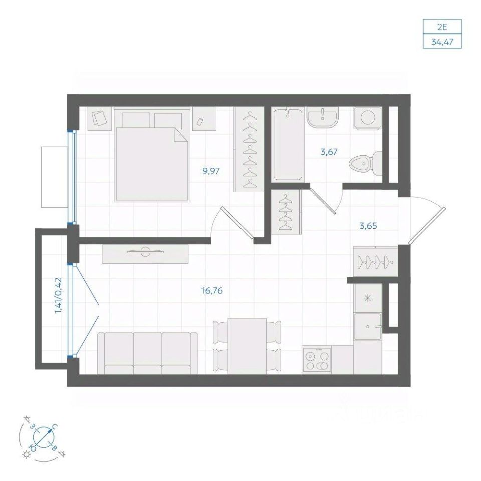 Общая площадь34,47 м²