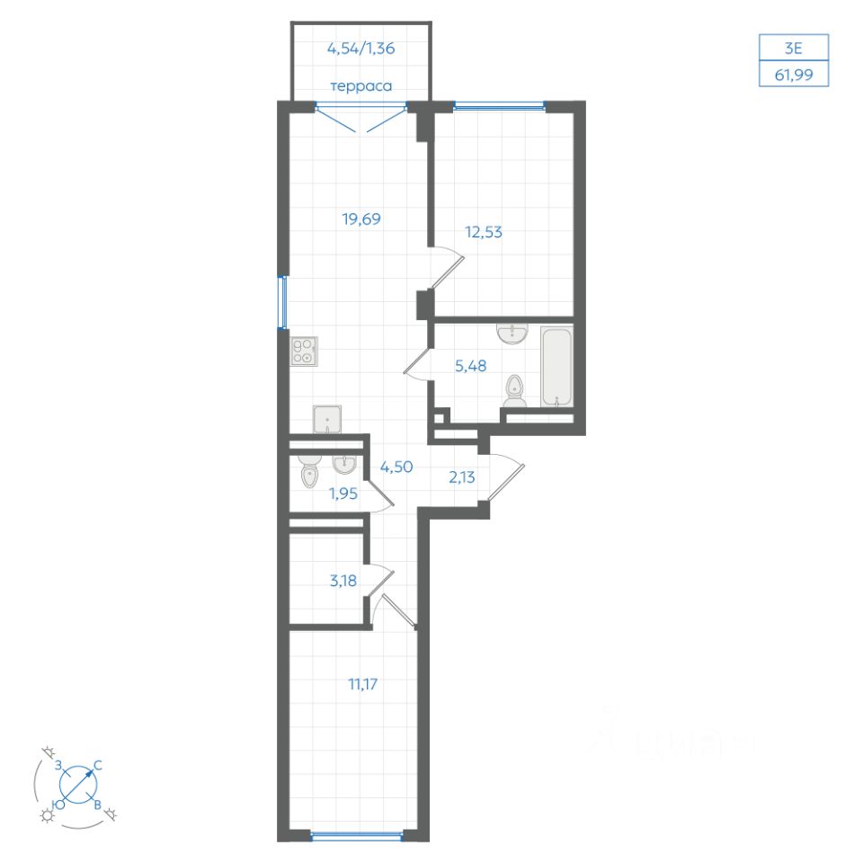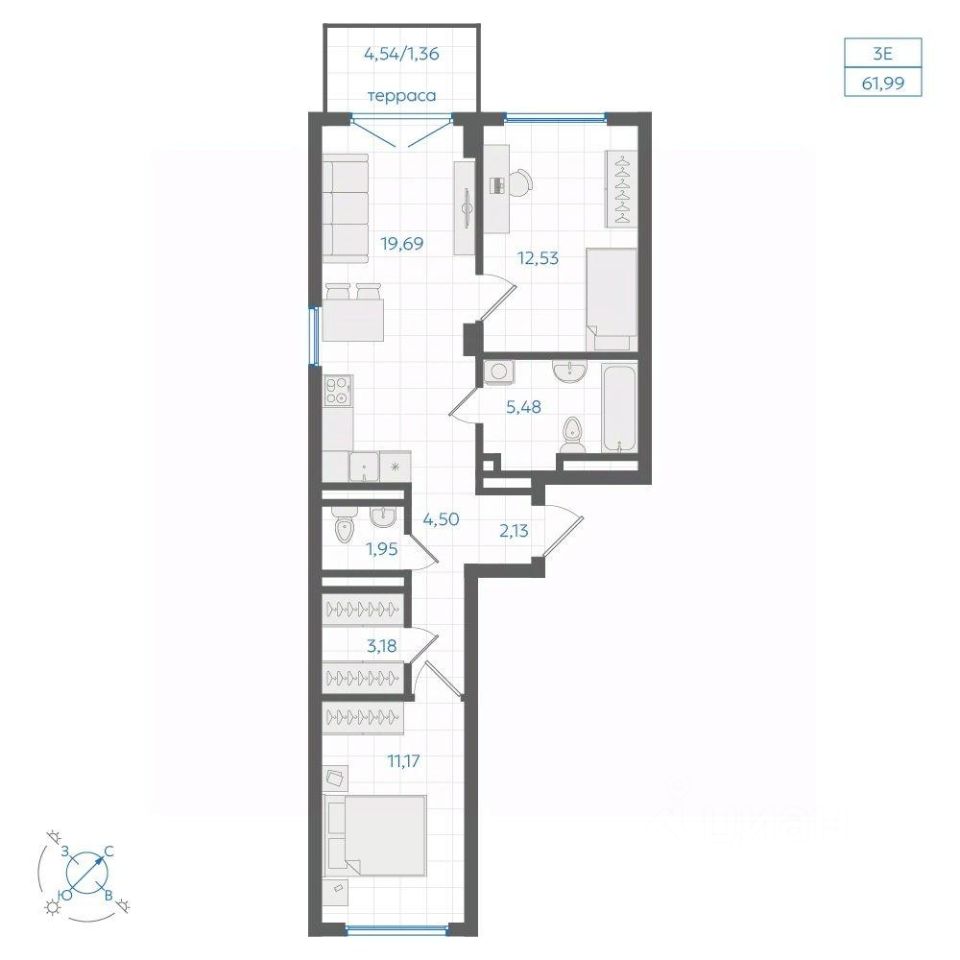 Общая площадь61,99 м²