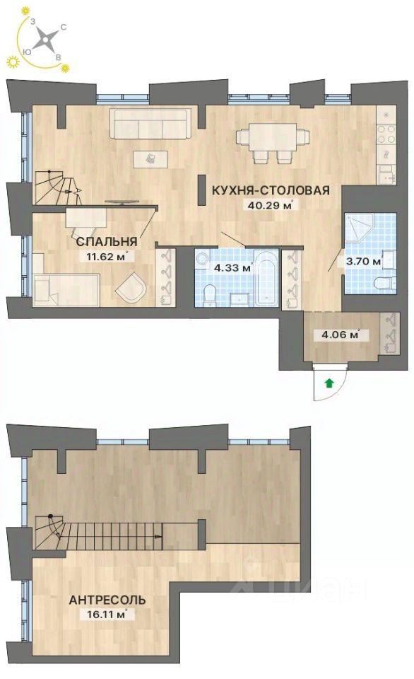 Планировки разработаны с учётом индивидуальных потребностей, а их площадь на 27% больше, чем в среднем по рынку Екатеринбурга. Множество стандартных эргономичных вариантов квартир, а также квартиры с террасами, антресолями и мастер-спальнями. Квартиры сдаются с чистовой отделкой, предусмотрена возможность дозаказать мебель и кухонную технику.