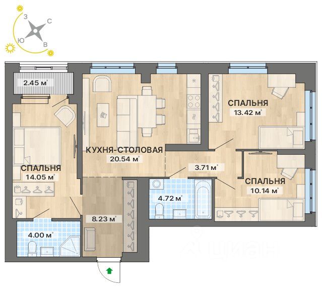 Планировки разработаны с учётом индивидуальных потребностей, а их площадь на 27% больше, чем в среднем по рынку Екатеринбурга. Множество стандартных эргономичных вариантов квартир, а также квартиры с террасами, антресолями и мастер-спальнями. Квартиры сдаются с чистовой отделкой, предусмотрена возможность дозаказать мебель и кухонную технику.