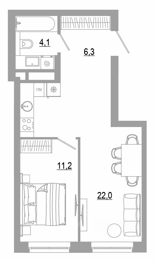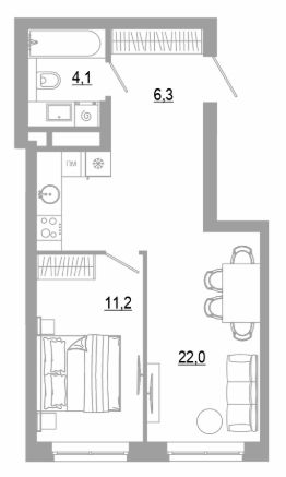 Общая площадь43,6 м²