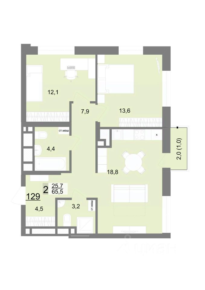 Общая площадь65,5 м²