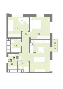 25,7 м²