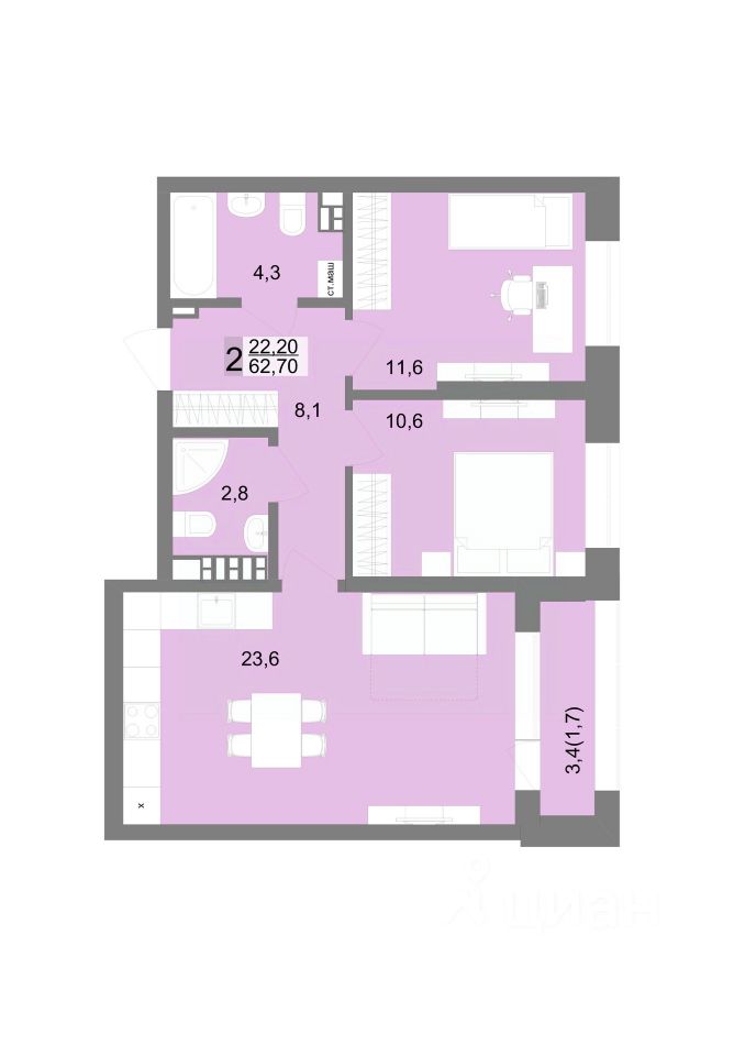 Продаётся 2-комнатная квартира в строящемся доме (Дом 1 секции 1-5), срок сдачи: II-кв. 2026, общей площадью 65 кв.м., на 10 этаже. Дом комфорт-класса на песчаном берегу Верх-Исетского пруда.