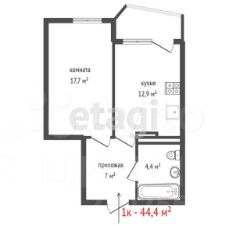 Общая площадь 44.4 кв. м, с высокими потолками 2.7 метра, расположенна на 12 этаже 33-этажного монолитного дома. Дом построен в 2017 году, оснащен одним пассажирским и тремя грузовыми лифтами, а также многоуровневой парковкой с возможностью аренды машиноместа.