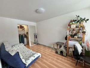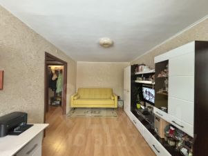 В квартире сделан ремонт на кухне: полностью снят старый пол, залит по новой, выложен керамогранит под дерево. Фартук из камня, натяжной потолок и моющиеся обои. Гарнитур, стол и 2 стула со спинкой оставляем.