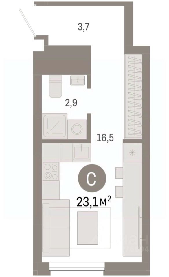 Студия в Северном квартале. Особенности планировки: вид во двор, предчистовая отделка.