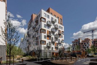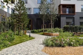 Оживлённое уличное движение останется за пределами квартала, а внутри создается собственная природная среда с зонами для вечерних прогулок, расслабленного отдыха, спорта и игр. Между домов проходит широкий пешеходный бульвар с разнообразным ландшафтом. Он объединяет общественные пространства между кварталами и переходит в площадь-сквер с фонтаном.