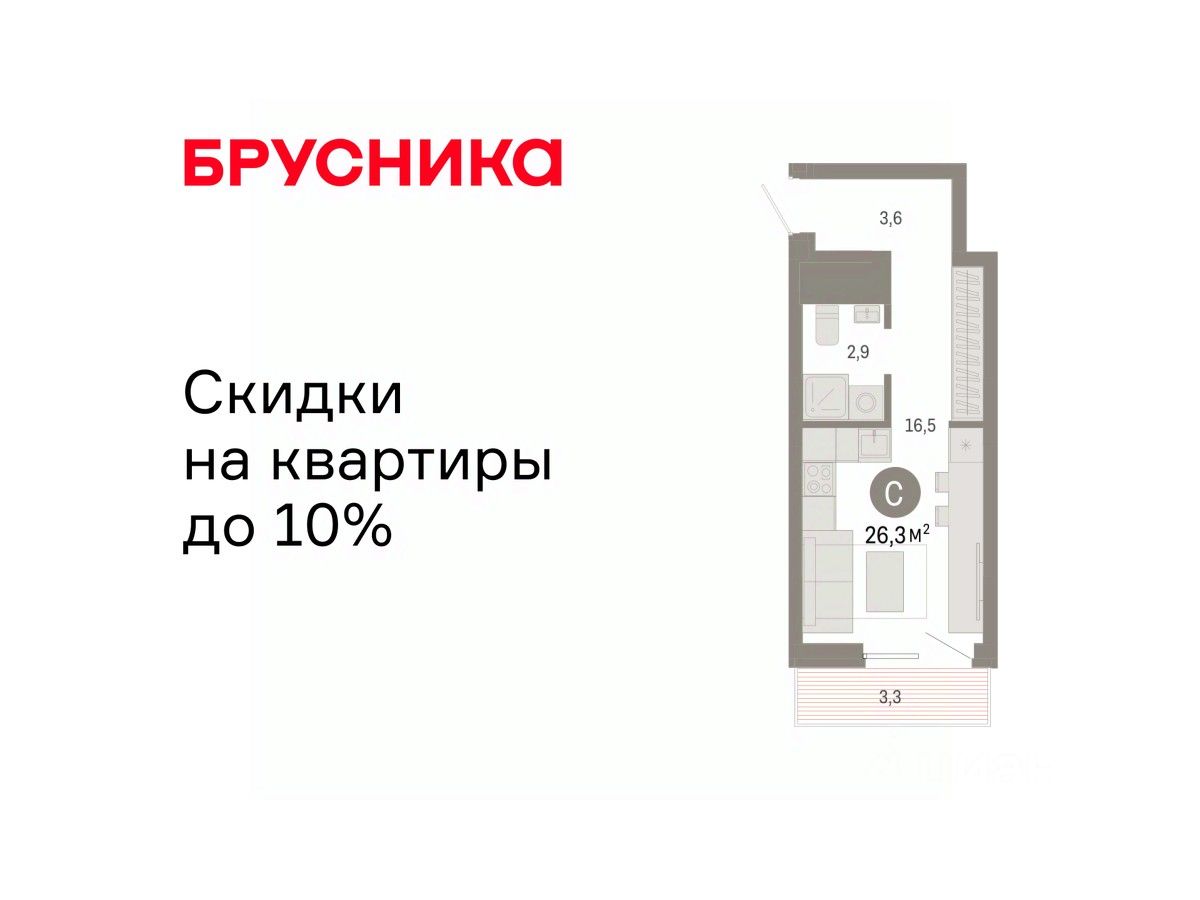 Студия в Северном квартале. Особенности планировки: балкон, вид во двор, двойная выгода, предчистовая отделка.