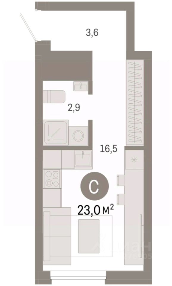 Студия в Северном квартале. Особенности планировки: вид во двор, предчистовая отделка.
