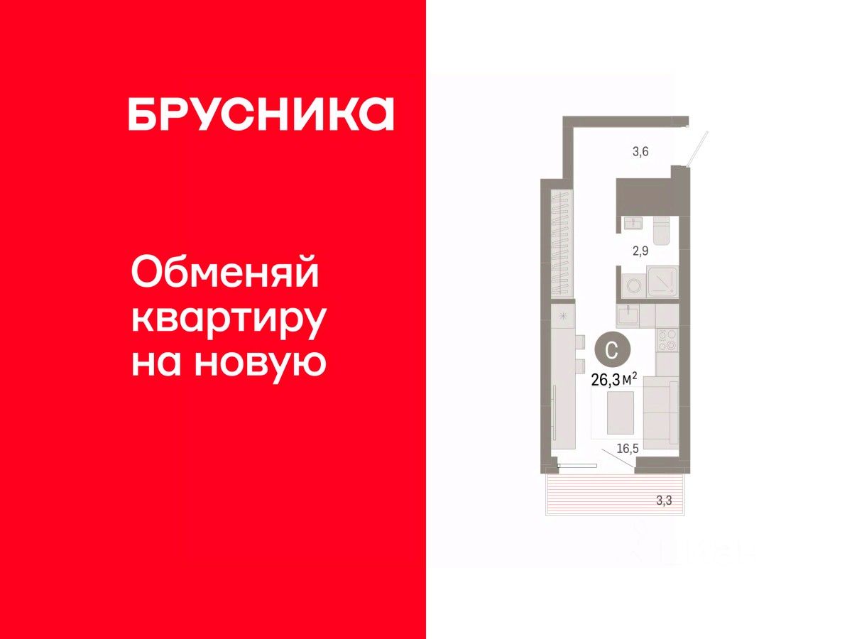 Студия в Северном квартале. Особенности планировки: балкон, предчистовая отделка.