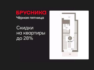 Студия в Северном квартале. Особенности планировки: вид во двор, предчистовая отделка, балкон.
