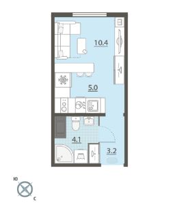 Жилая площадь 10.6 м2, кухня 5 м2, чистовая отделка. Раздельных санузлов - нет, балконов - нет, лоджий - нет.