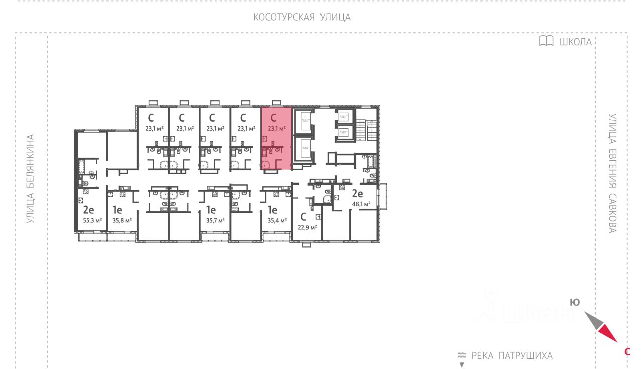 Квартира располагается на 13 этаже 24-этажного дома в ЖК Меридиан.
