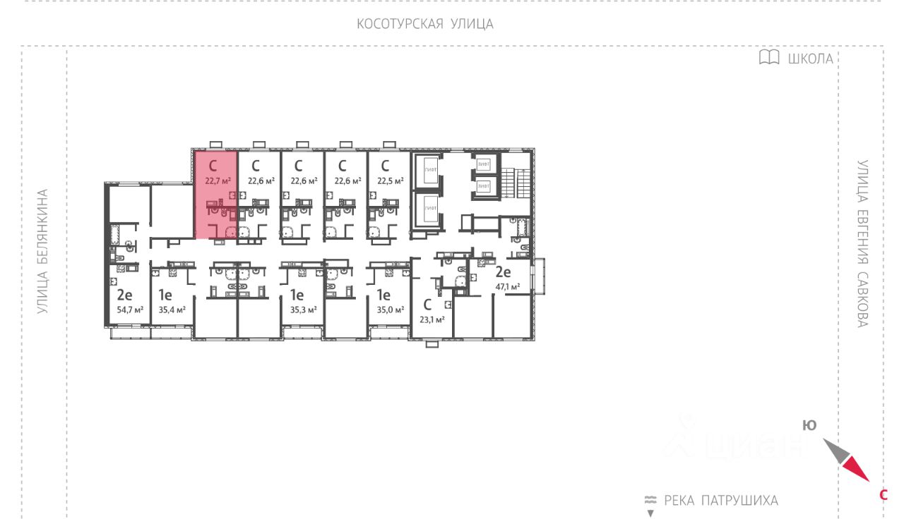 Квартира располагается на 22 этаже 24-этажного дома в ЖК Меридиан.