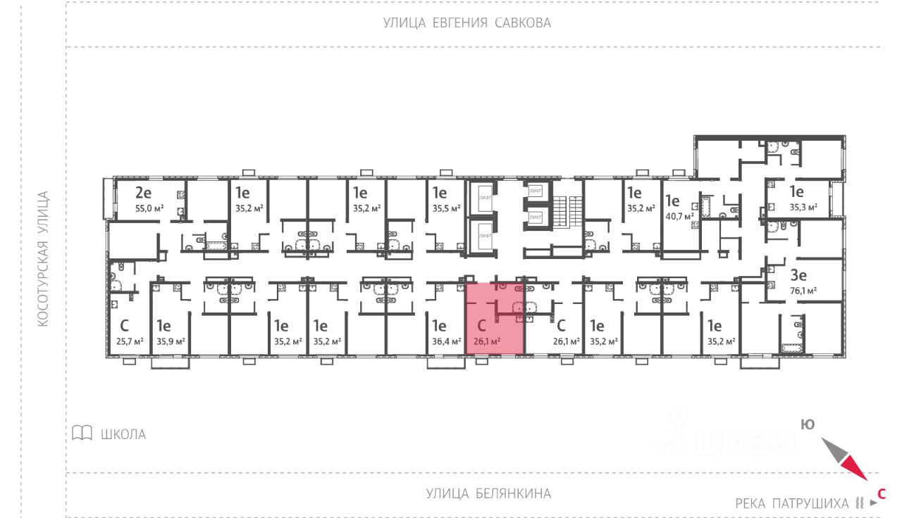 Застройщик - Специализированный застройщик ЛСР. Недвижимость-Урал, сдача дома - I квартал 2026 года, высота потолков 2.5 м.