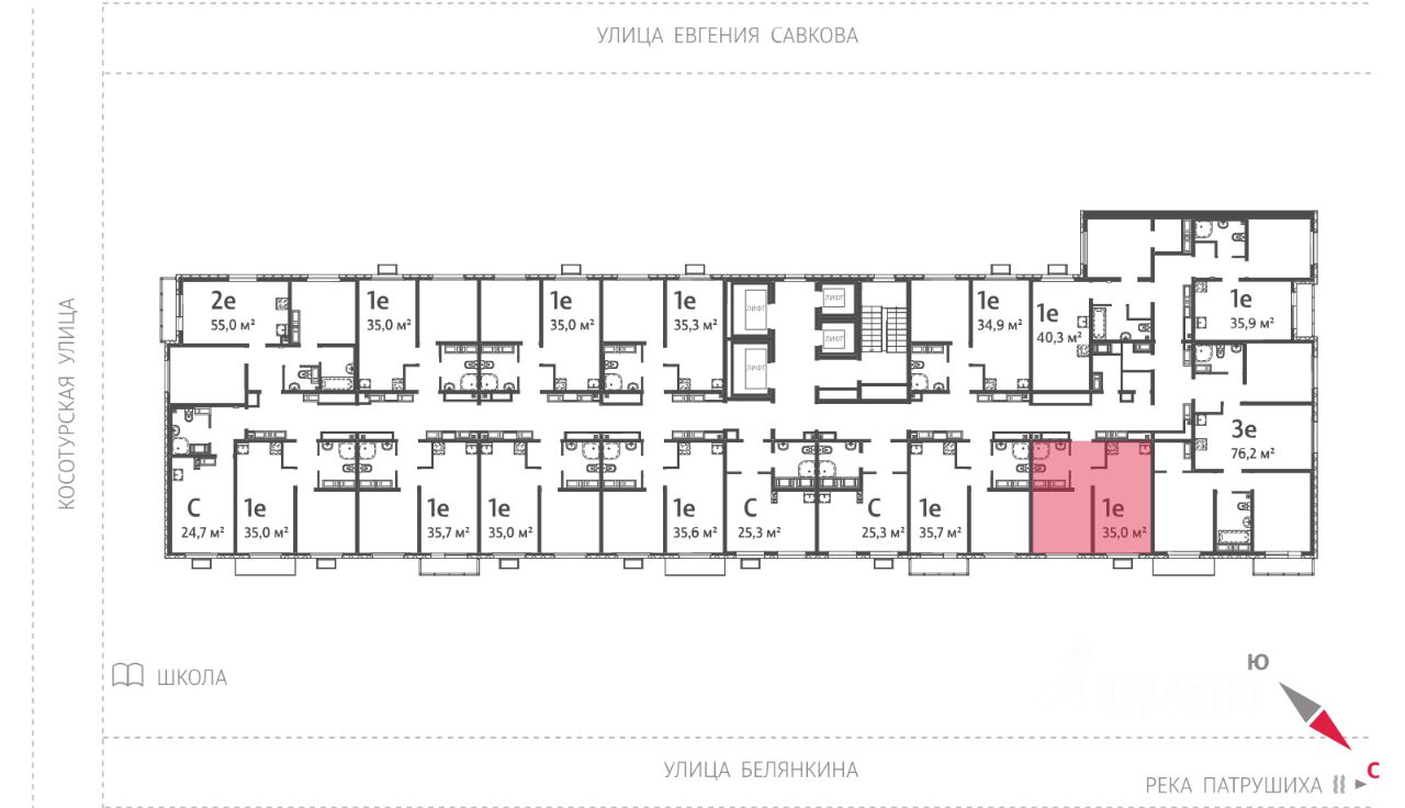 Квартира располагается на 18 этаже 24-этажного дома в ЖК Меридиан.