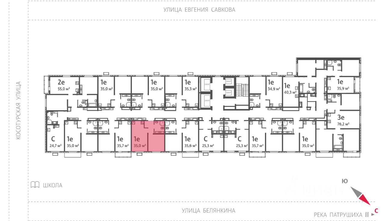 Квартира располагается на 19 этаже 24-этажного дома в ЖК Меридиан.