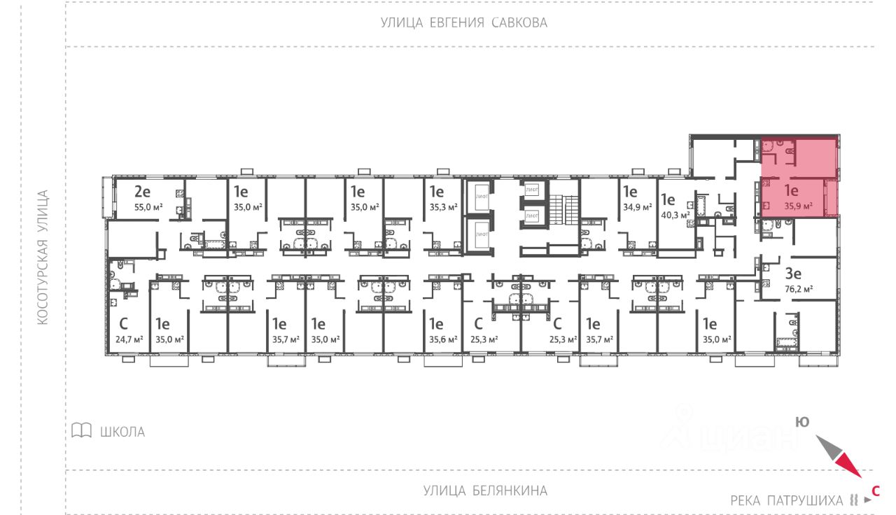 Квартира располагается на 20 этаже 24-этажного дома в ЖК Меридиан.