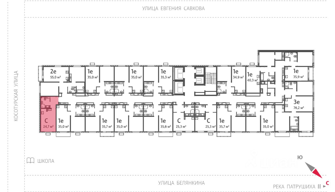 Квартира располагается на 21 этаже 24-этажного дома в ЖК Меридиан.