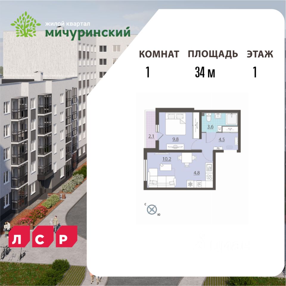 Квартира располагается на 1 этаже 8-этажного дома в ЖК Мичуринский.